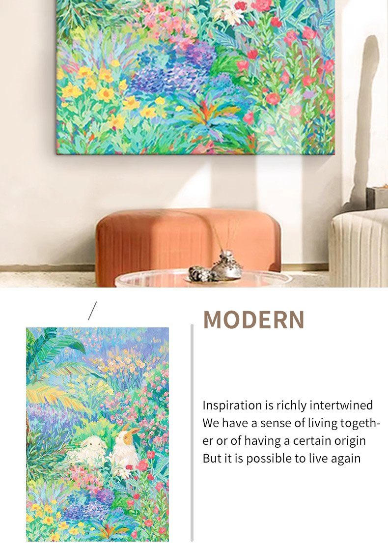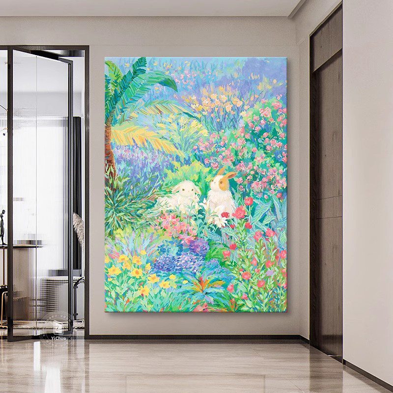 Colorful Flower Sea Hand-painted Oil Painting Abstract Cute Rabbit Living Room Decoration Painting Niche Art Porch Hanging PaintingWhatsApp us