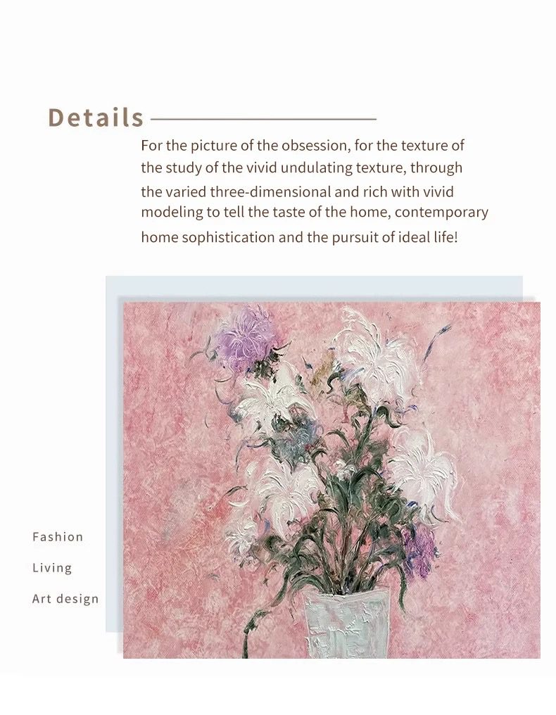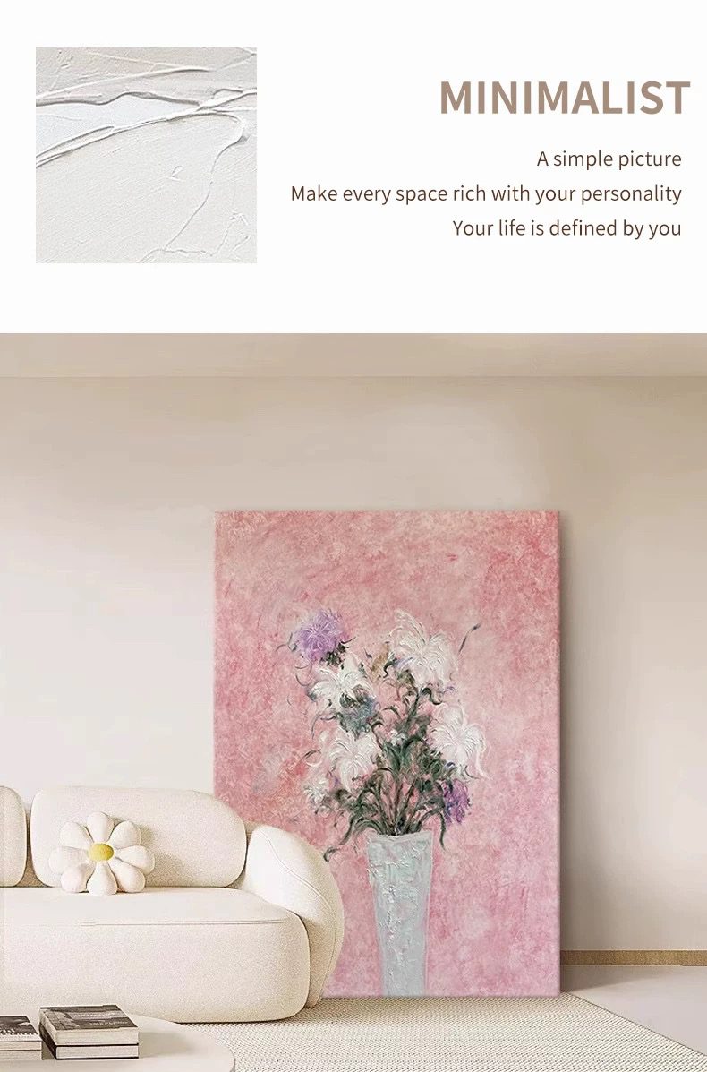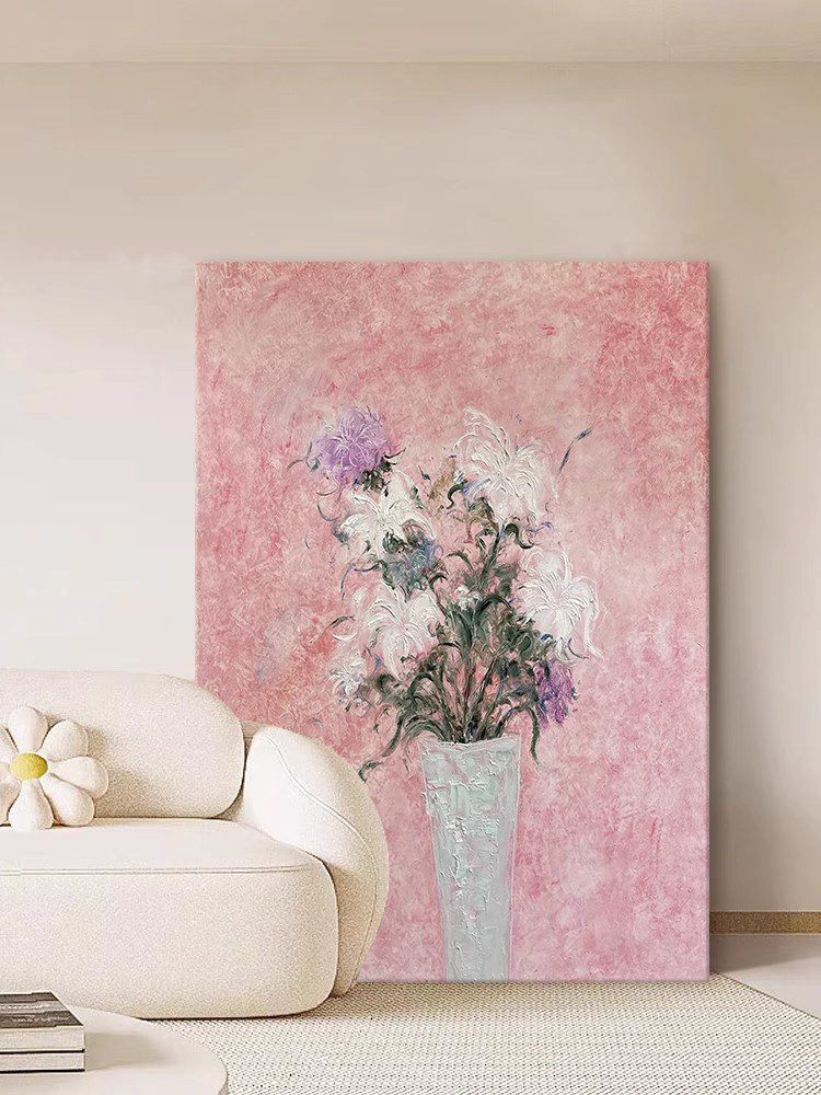 Cream Style Flower Living Room Decoration Painting Warm Tone High-end Texture Hand-painted Oil Painting Pink Dining Porch Hanging PaintingWhatsApp us