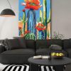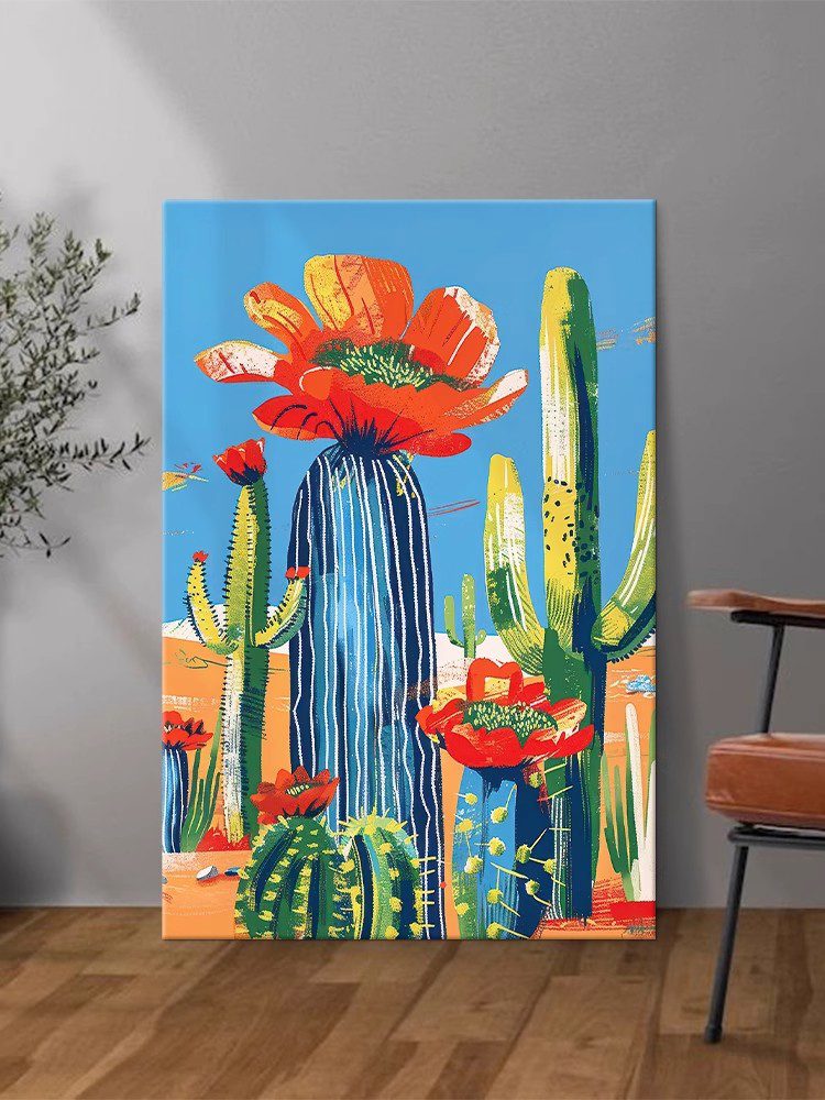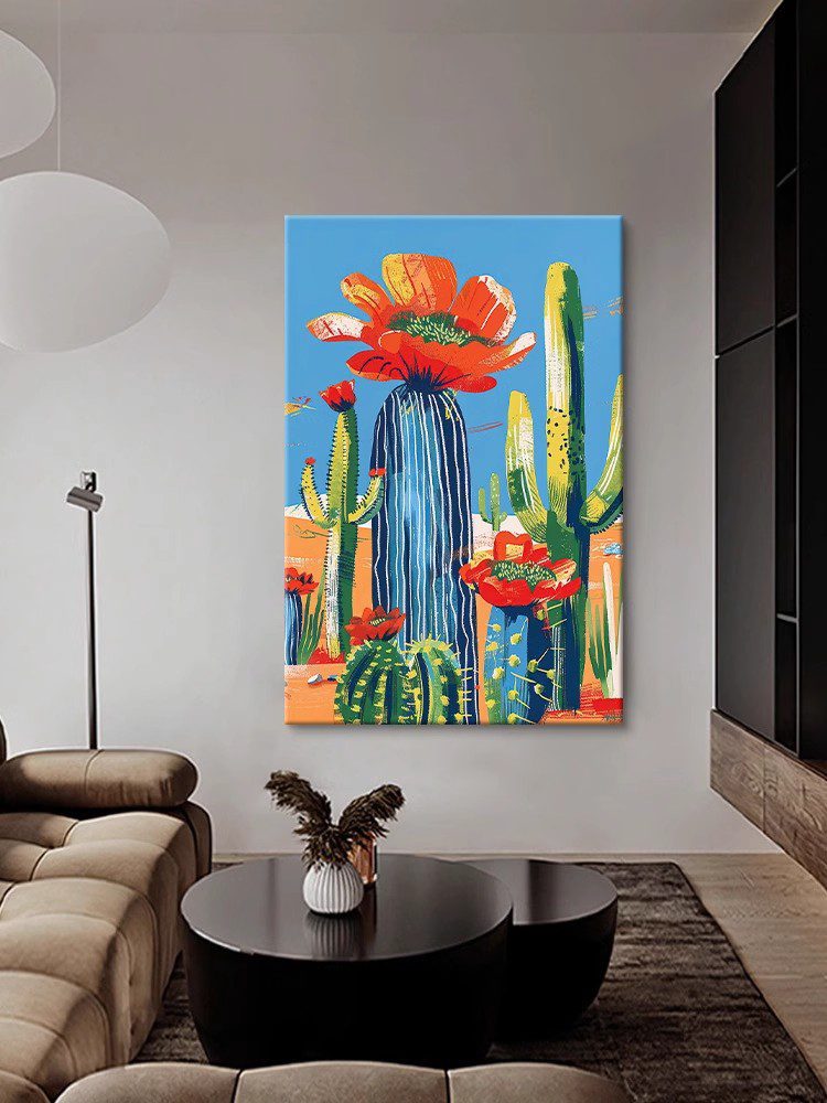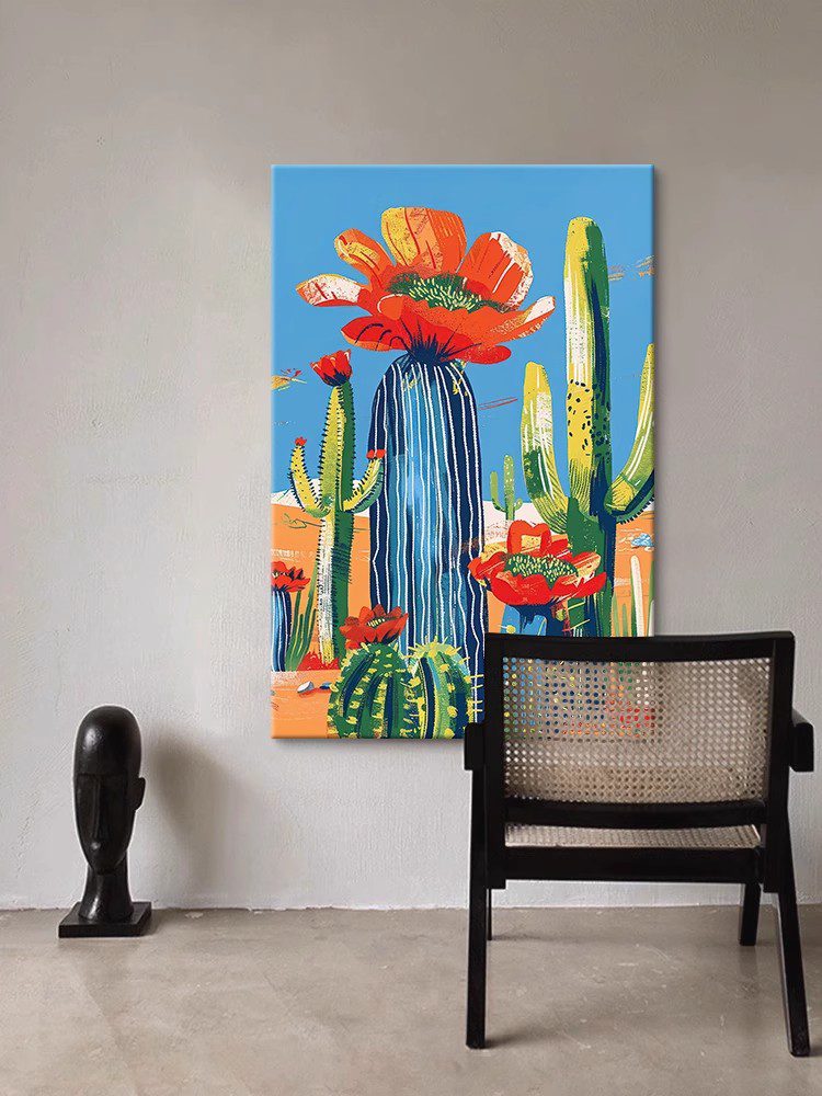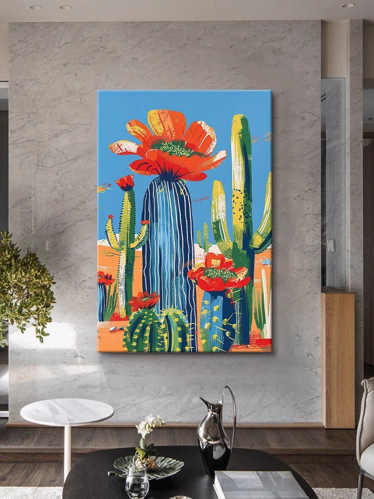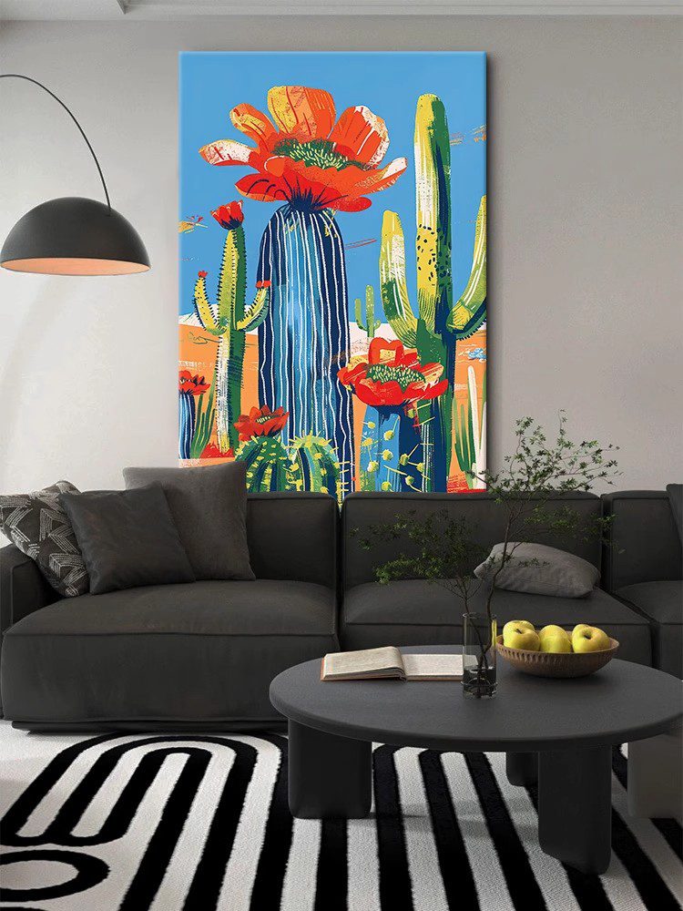 Dopamine Cactus Living Room Sofa Background Wall Decoration Painting Porch Hanging Painting Abstract Pure Hand-painted Oil PaintingWhatsApp us