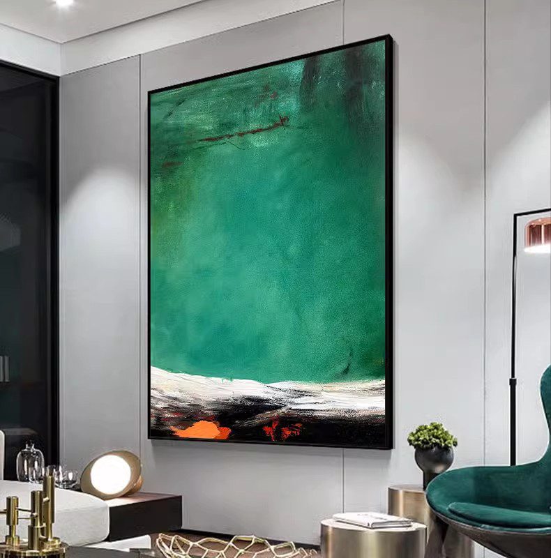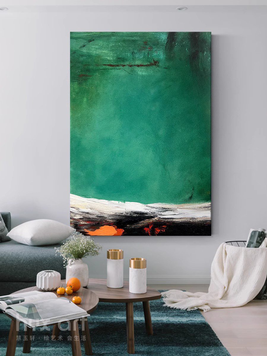 Hand-painted Oil Painting “Bi Yi” Modern Light Luxury Abstract Painting Living Room Green Decorative Painting Restaurant Porch Hanging PaintingWhatsApp us