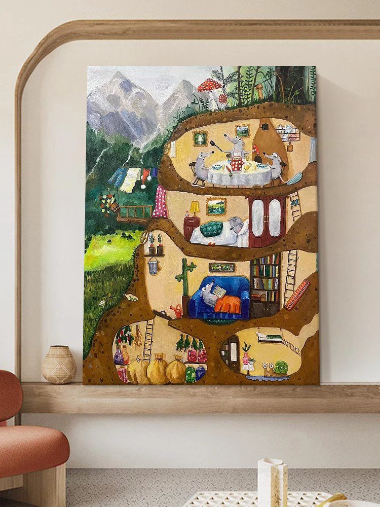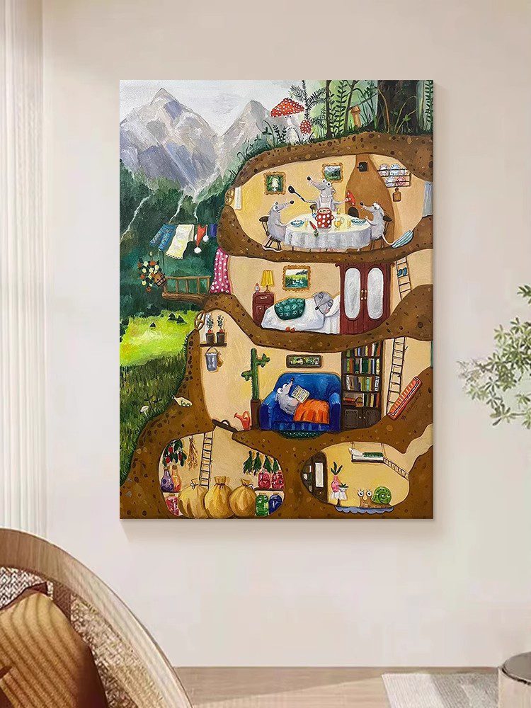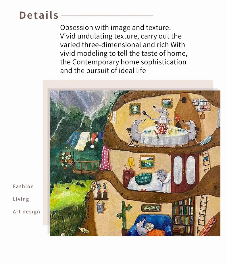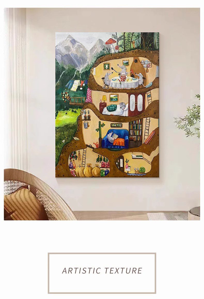 Living Room Cartoon Mouse Decorative Painting Porch Animal Landscape Texture Hanging Painting Children Room Art Hand-painted Oil PaintingWhatsApp us