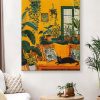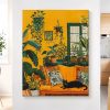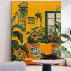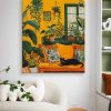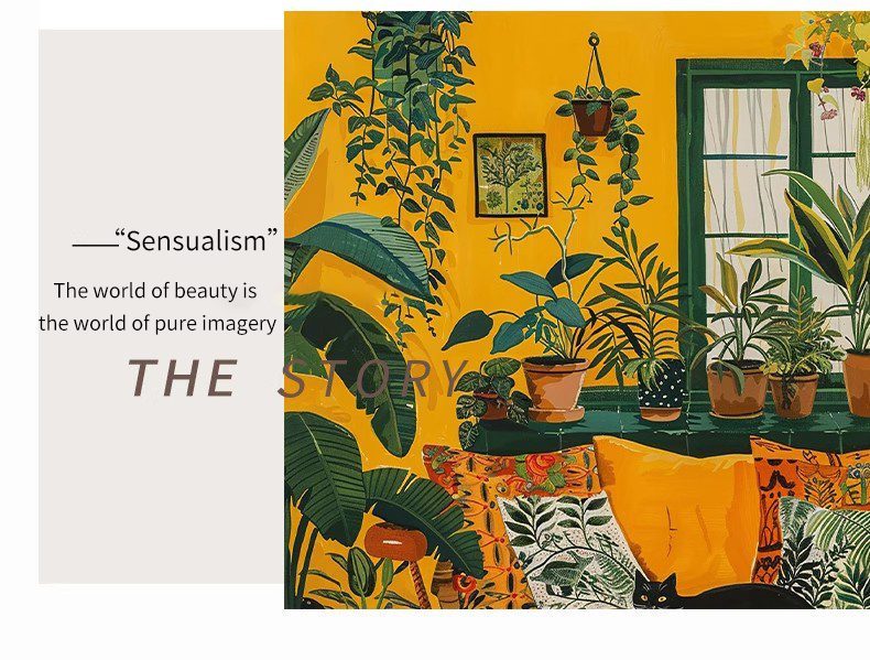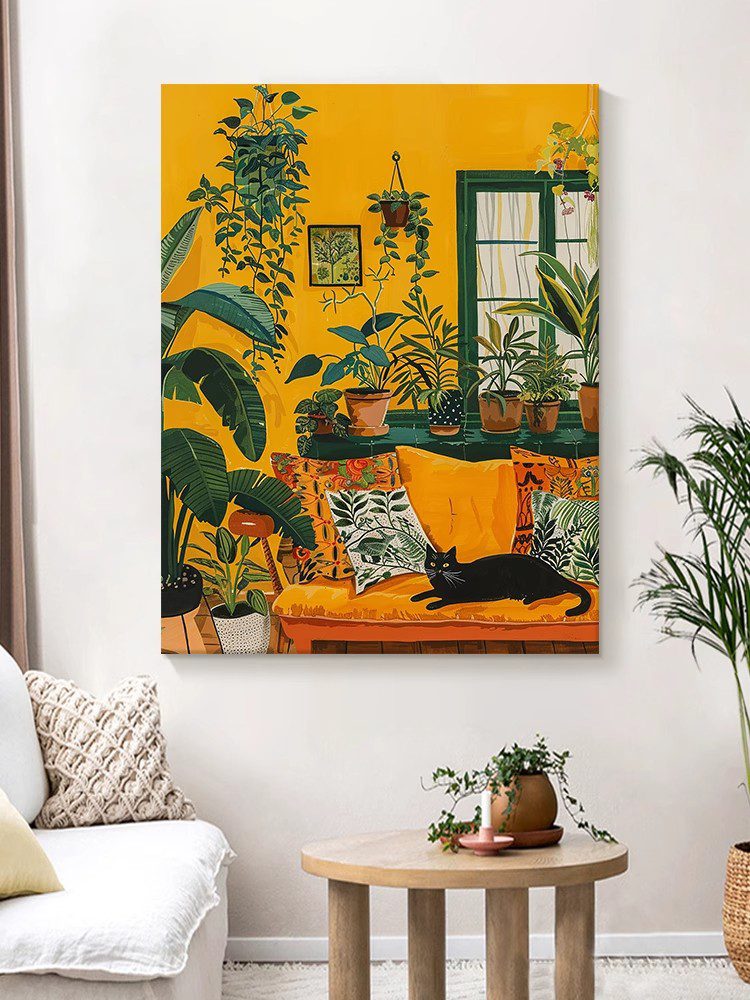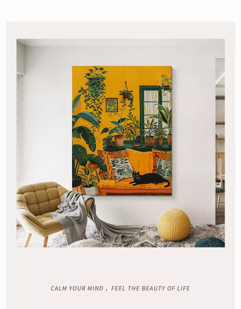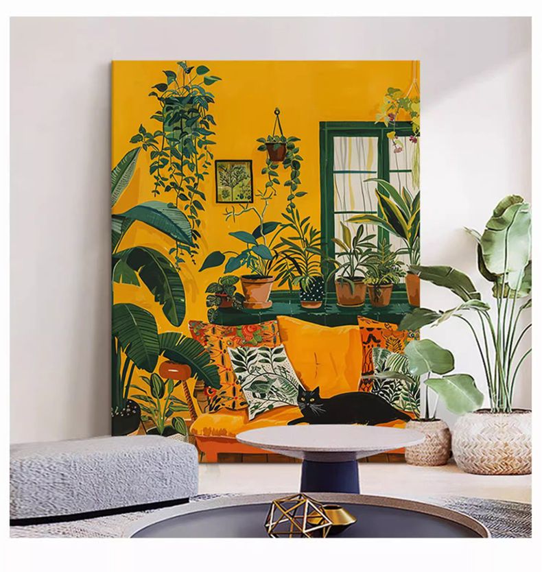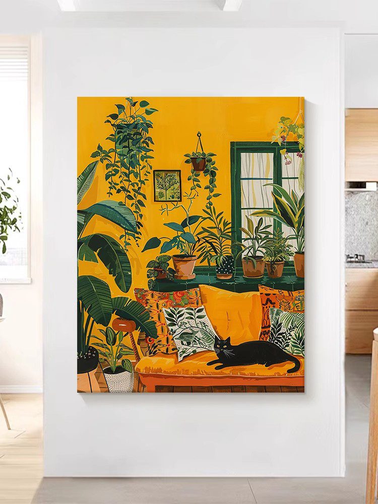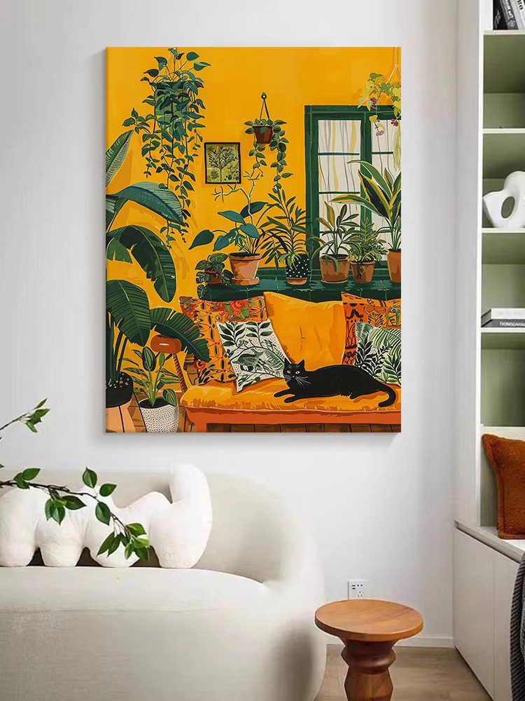 Living Room Decoration Painting Green Plants Black Cat Pure Hand-painted Oil Painting Art Acrylic Hanging PaintingWhatsApp us