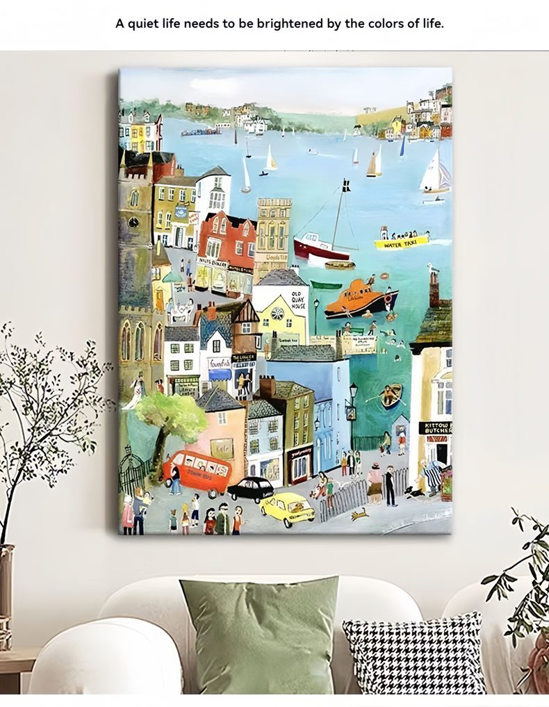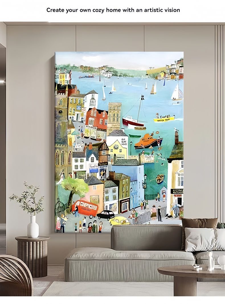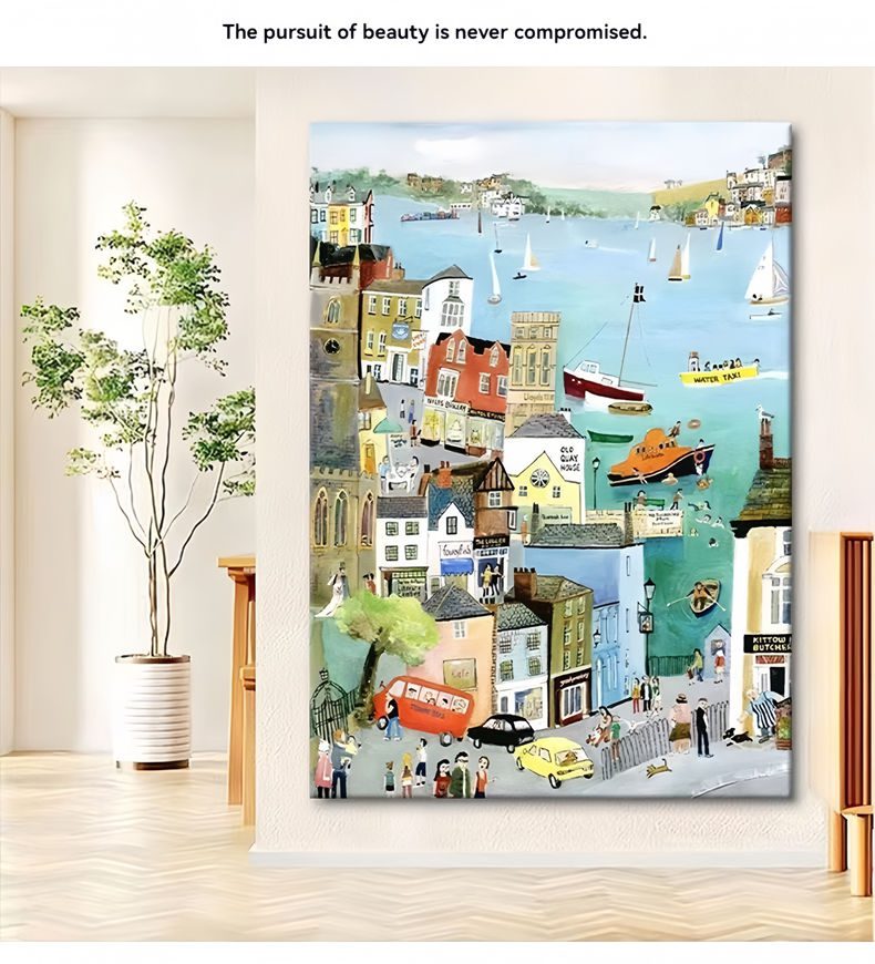 The painting captures the tranquility and harmony of Kennedy Town’s seaside, showing the leisurely life of the small town. The waves gently lapping the shore form a sharp contrast with the city skyline in the distance, highlighting the unique charm of the seaside town. The characters in the painting move naturally, adding a breath of life, making the whole painting more vivid and full of storytelling.