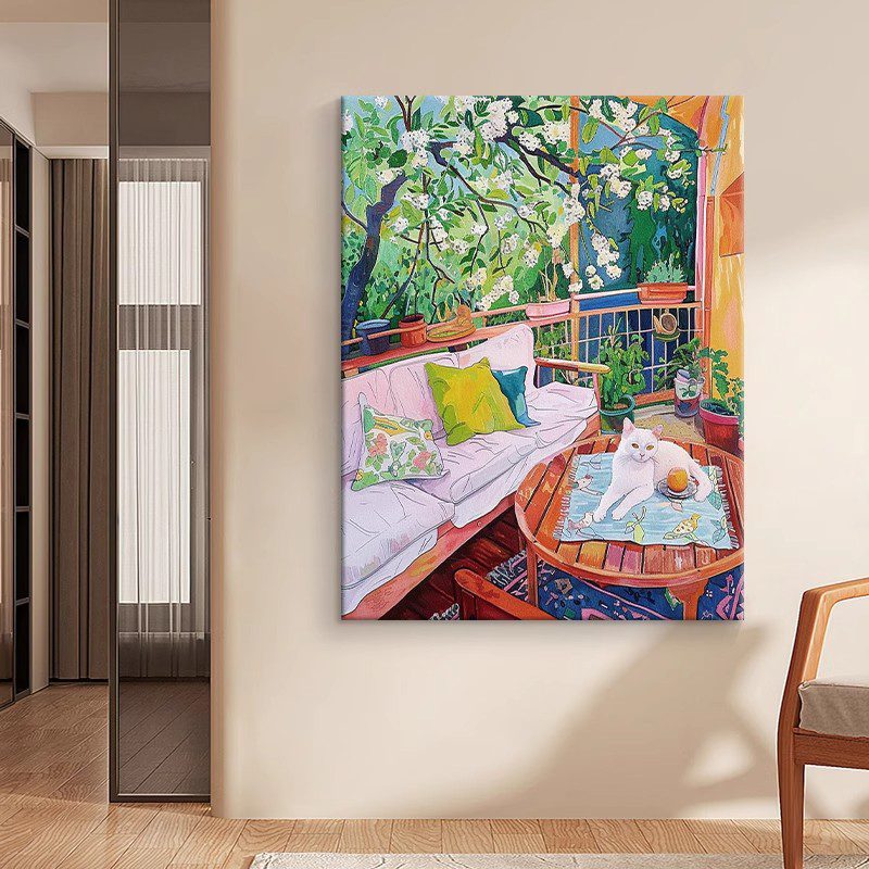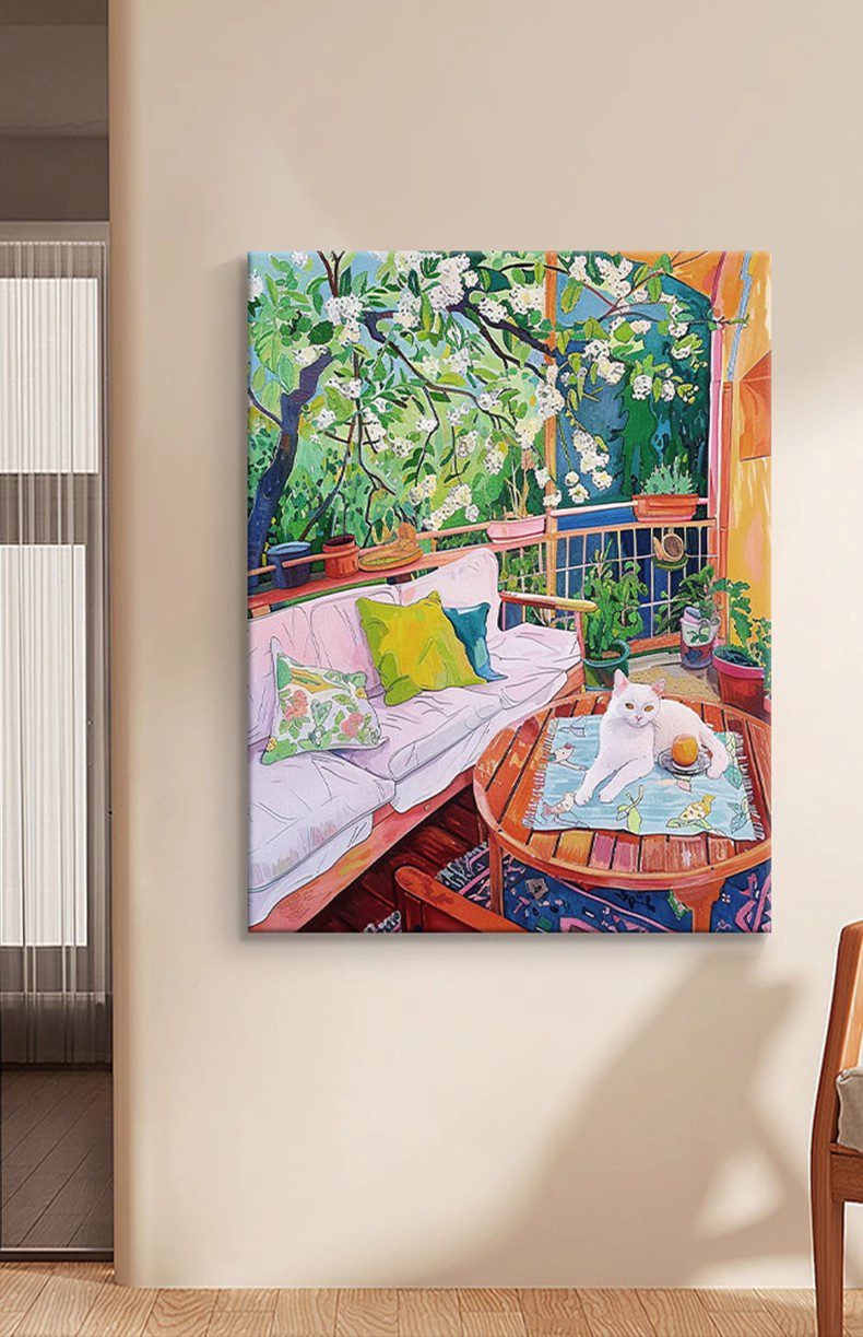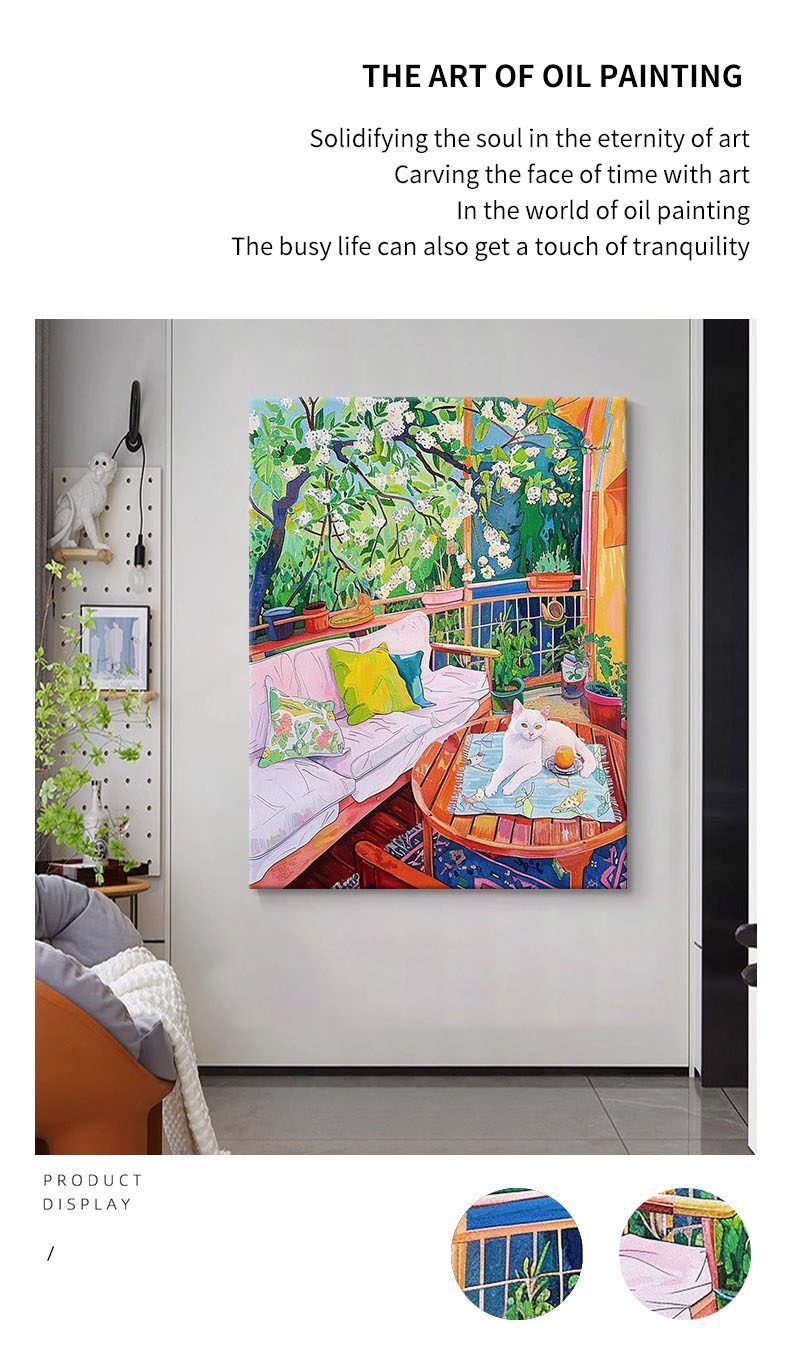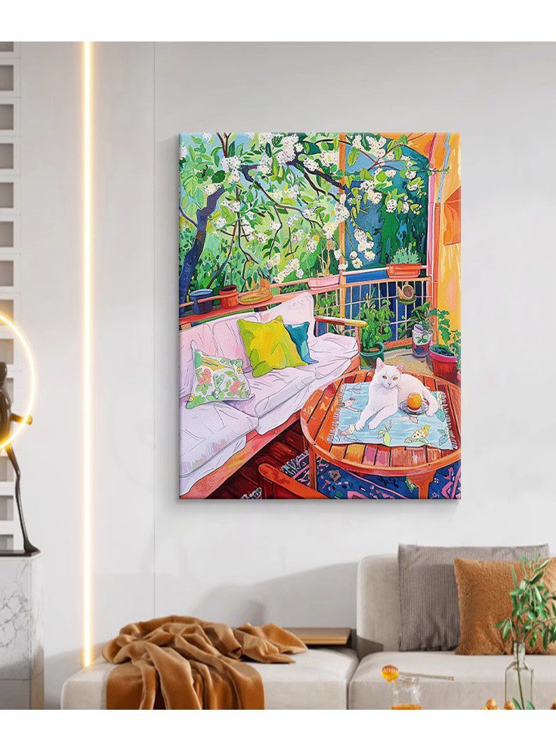 Matisse Art Pure Hand-painted Oil Painting White Cat Balcony Decorative Painting Living Room Hanging Painting Porch Texture PaintingWhatsApp us