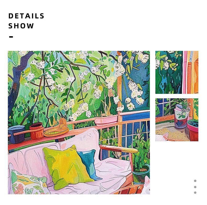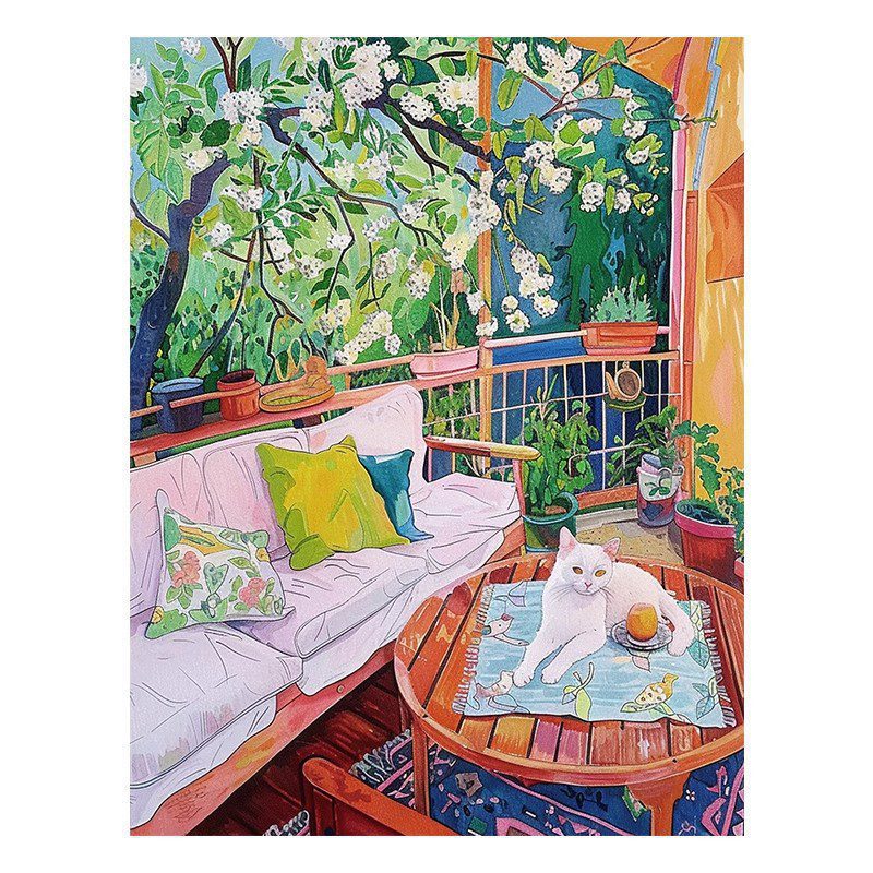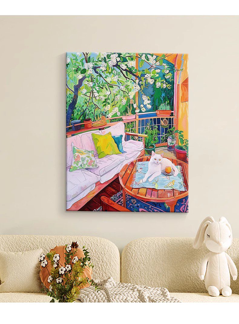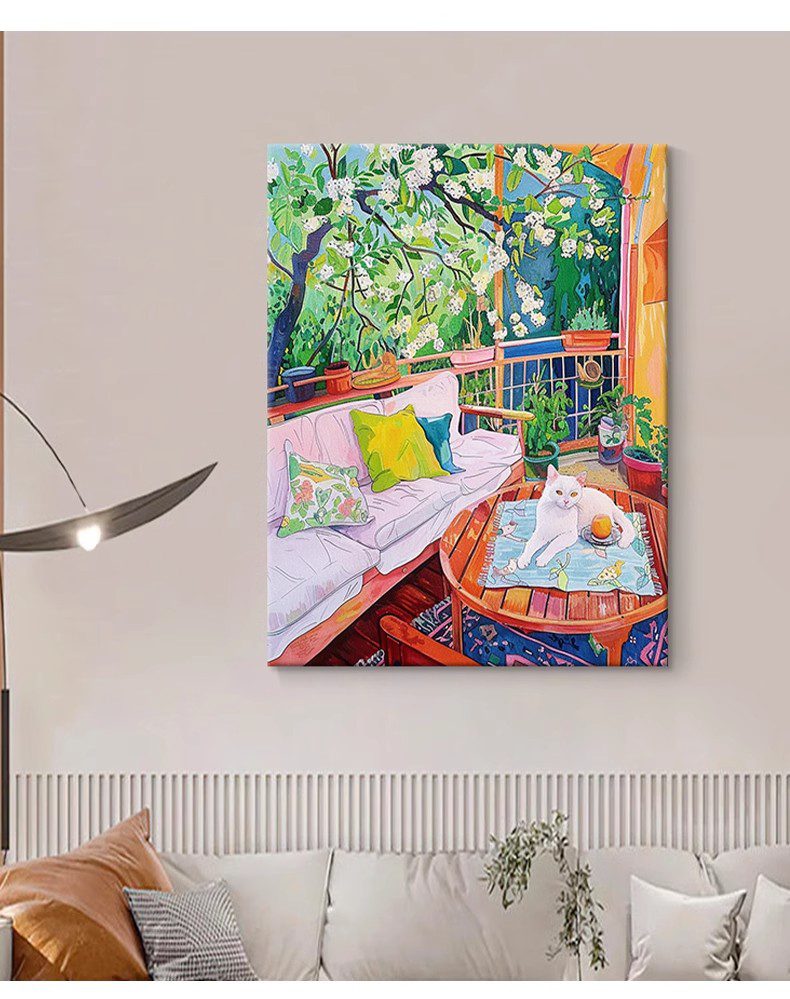 Matisse Art Pure Hand-painted Oil Painting White Cat Balcony Decorative Painting Living Room Hanging Painting Porch Texture PaintingWhatsApp us