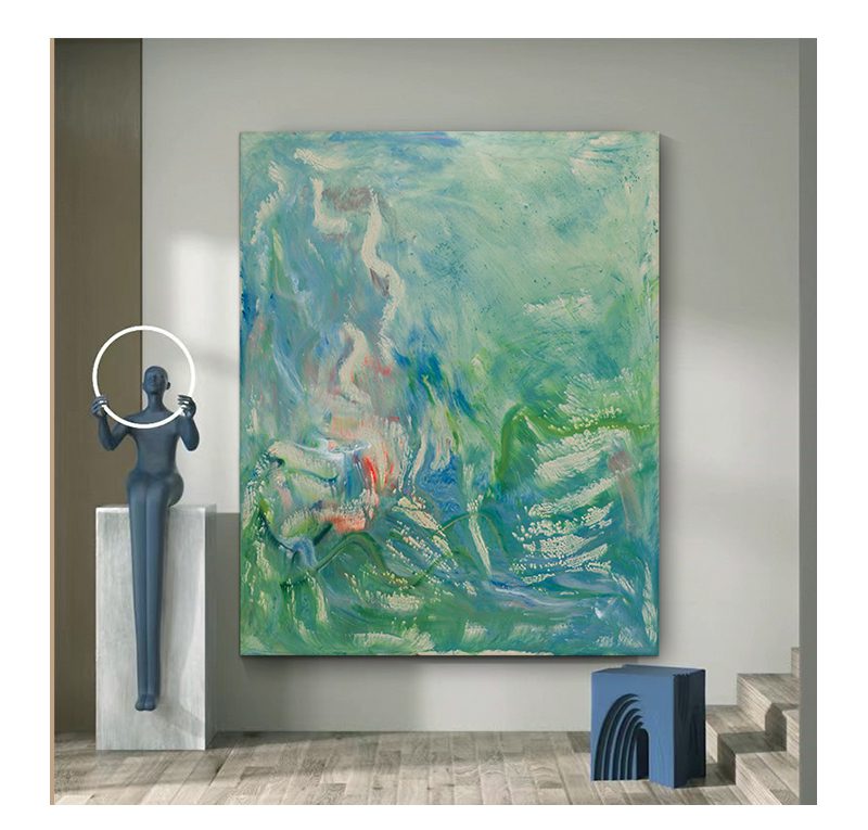 Pure Hand-painted Oil Painting High Sense Living Room Green Decorative Painting Restaurant Porch Hanging PaintingWhatsApp us